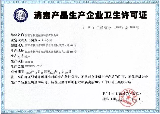 战疫再助力!康恩贝珍视明获消毒剂生产卫生许可